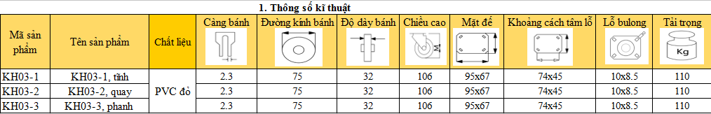 | Đặc điểm riêng | Càng thép dày, chắc chắn. Cổ xoay bi tì và bi côn chịu lực. Bánh nhựa PA gia cường có tải trọng lên tới vài tấn/ 01 bánh xe |