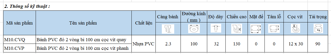 Đánh giá M10.CVQ : Bánh pvc đỏ 2 vòng bi 10 cm cọc vít quay