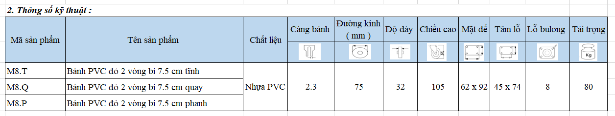 Đánh giá M8.T: Bánh PVC đỏ 2 vòng bi 7.5cm tĩnh