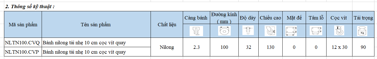 Đánh giá NLTN100.CVP : Bánh nilong tải nhẹ 10 cm cọc vít phanh