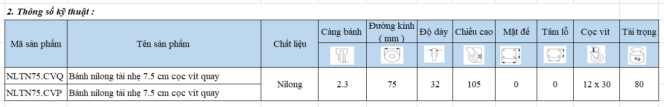 Đánh giá NLTN75.CVP: Bánh nilong tải nhẹ 7.5cm cọc vít phanh