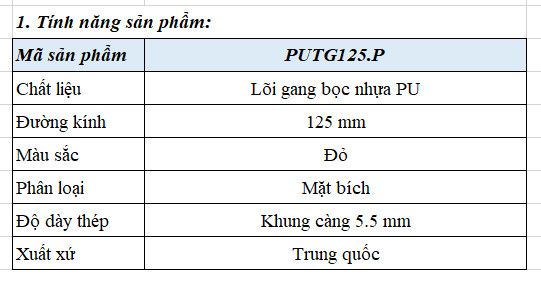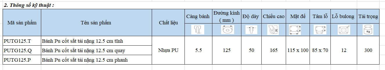 Đánh giá PUTG125.P : Bánh Pu cốt sắt tải nặng 12.5 cm phanh