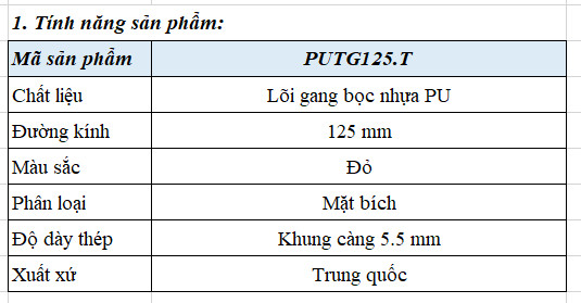 Đánh giá PUTG125.T : Bánh PU cốt sắt tải nặng 12.5 cm tĩnh