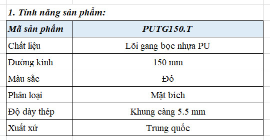 Đánh giá PUTG150.T : Bánh Pu cốt sắt tải nặng 15 cm tĩnh