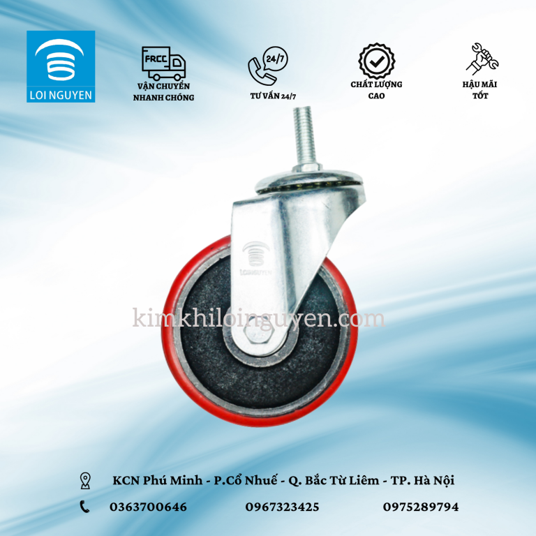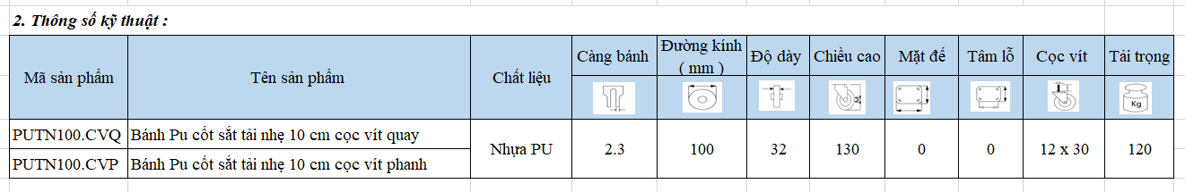 Đánh giá PUTN100.CVQ : Bánh Pu cốt sắt tải nhẹ 10 cm cọc vít quay