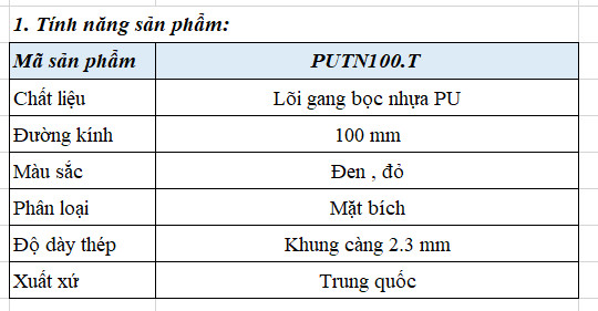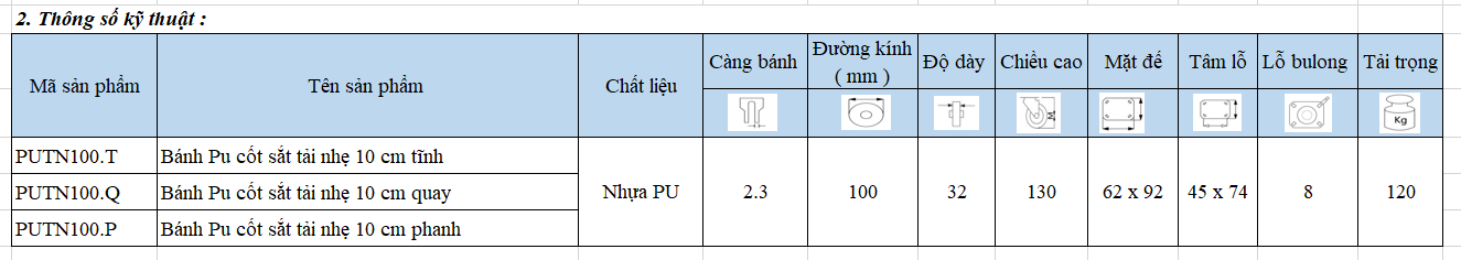 Đánh giá PUTN100.T : Bánh Pu cốt sắt tải nhẹ 10 cm tĩnh
