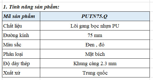 Đánh giá PUTN75.Q : Bánh PU cốt sắt tải nhẹ 7.5 cm quay